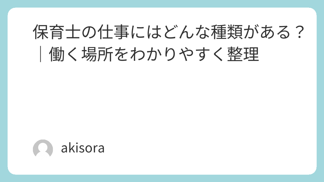 保育士の仕事にはどんな種類がある?|働く場所をわかりやすく整理
