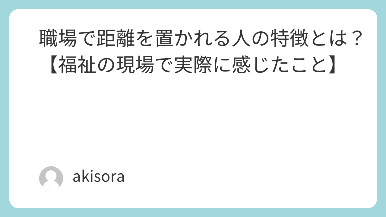 「職場で距離を置かれる人の特徴とは?【福祉の現場で実際に感じたこと】」について、実際に福祉の現場で働いてきた経験から書いています。